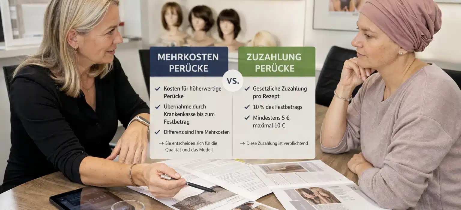 Was ist der Unterschied zwischen Zuzahlung und Mehrkosten bei einer Perücke?
